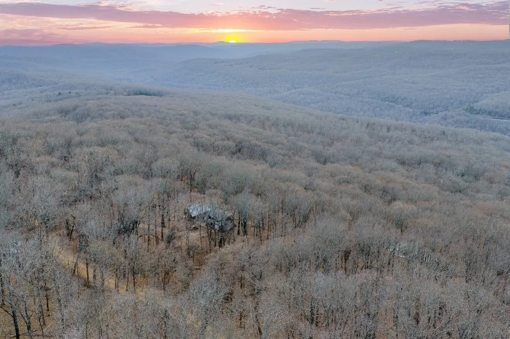 If you like the warm glow of Brazilian wood floors, hand crafted doors and wood work, a slate/native stone hearth with antique wood stove, and the inspiration of stained glass, you will love this 2 bedroom Ozark Cottage with wrap around porch, situated on 10 wooded acres overlooking a stocked pond and the Boston Mountains beyond. The former artist's original workshop is right next door with an overhead door with workbenches and a drafting desk, heated by a thermostatically controlled propane heater. Workshop opens to a back deck with 180 degree view. Your overflow guests and family will love the 2 BR apartment above the shop. Features are too many to list! Distinctive and unique to the Ozark Mountains located near 2 State Parks, and an easy commute to the University of Ar. at Fayetteville and Fort Smith. Sq footage includes apartment (ADU). Shown by Appointment.