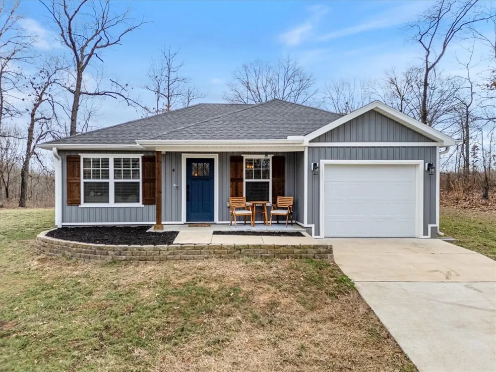 The sweetest little cottage perched on a knoll blending cozy character with modern finishes...and bike out to the trail system! This thoughtfully designed two bedroom, two bath home offers a carpet-free interior with tile and wood laminate flooring and lots of natural light. The inviting living room features a warm fireplace and a stunning shiplap wall. The kitchen showcases beautiful quartz countertops, ample cabinetry and a functional layout that flows seamlessly into the dining space. The primary suite features a walk in closet and a spa like bath with large walk in fully tiled shower and double vanity with quartz counters. The second bedroom also features a walk in closet and is conveniently located near the hall bath. Additional highlights include a dedicated laundry room, a covered back patio overlooking a level back yard with a cozy firepit - great for outdoor gatherings year round! Located in the Bentonville school district. Full time residence, weekend retreat or AirBnB possibilities!