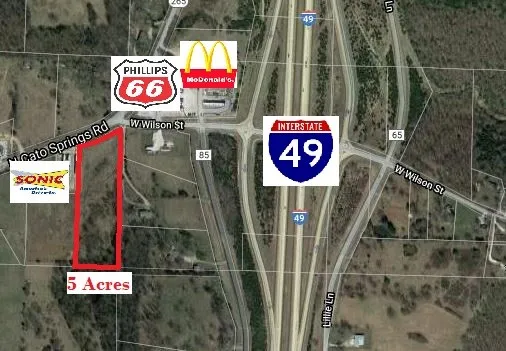 Five acres of unimproved land in south Fayetteville, AR. Sewer and water are at the street. Property has been surveyed in the past for the land split (Sonic) and is currently zoned C2. This property will work great for B & C class developments. All surrounding land is zoned commercially as well. Fast food or sit down restaurant will do very well here as well as general business or offices. The most recent traffic count for I-49 along this corridor was in 2021 and recorded over 30,000 VPD. In 2022 this spot along Cato Springs Rd saw an average of 5,000 VPD. Washington county has seen consistent and healthy growth. Northwest Arkansas is the fastest growing metro area in the state and 22nd for the entire United States. Come and root with the Arkansas Razorbacks. WOO PIG SOOIE....... If more land is desired there is additional neighboring acreage for sale. Inquire for more information about this additional option........ * Nearest Airport: Drake Field* ~ 4 Miles usually a 10min Drive.